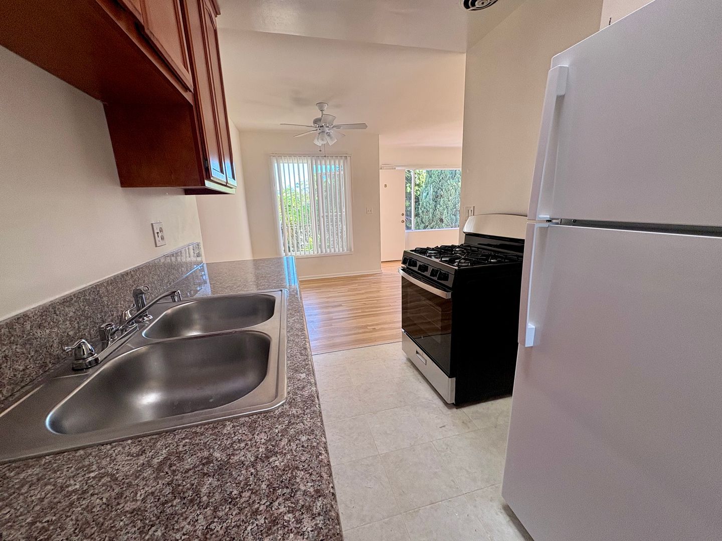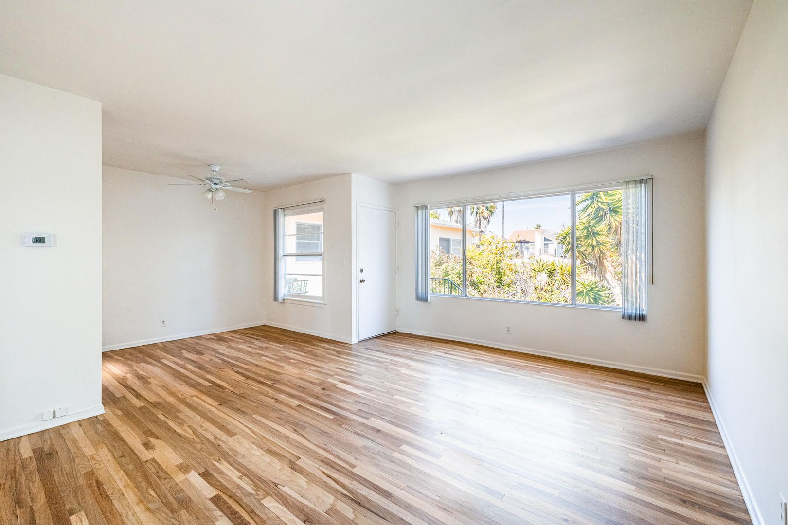 Prime Santa Monica, Spacious 1bd 1ba unit with large and bright open floor plan on second floor. This unit offers new kitchen cabinets, new kitchen sink and flooring. Appliances provided are a refrigerator, new garbage disposal and range. Bedroom features plenty of closet space. Built-in linen storage in the hallway. The property is located near popular Montana Ave shops and restaurants, schools, and minutes to the Santa Monica Beach, and the Promenade. Coin Laundry on the premises. One car garage. Great school district. Beautiful common area courtyard and landscaping.
